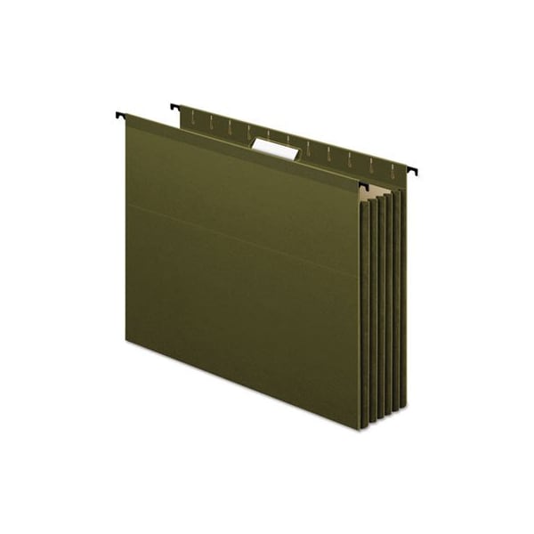 Revolutionary SureHook features built-in tension springs. Stronger, sturdier rods and hooks bend less, and the folders slide with ease. Full-height gussets will not catch on drawer rails. 3 1/2in expansion. Polylaminate reinforced top and bottom edges provide superior durability. Folder Size Type: Letter; Max Folder Expansion: 3.5in; Folder Color: Standard Green; Color Family: Green.