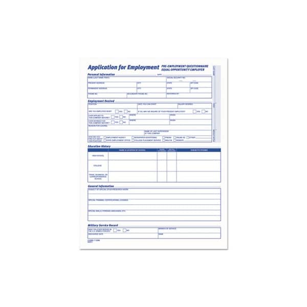 TOPS, Comprehensive Employee Application Form, 8 1/2 X 11, 25 Forms