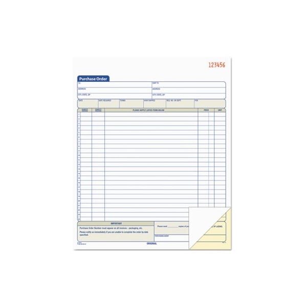 Consecutively numbered purchase orders and numbered lines help with record keeping. Keep a copy for a permanent record. 22 Lines. Form Type Details: Invoice/Receipt; Dated/Undated: Undated; Forms Per Page: 1; Form Size: 8.38 x 10.19.