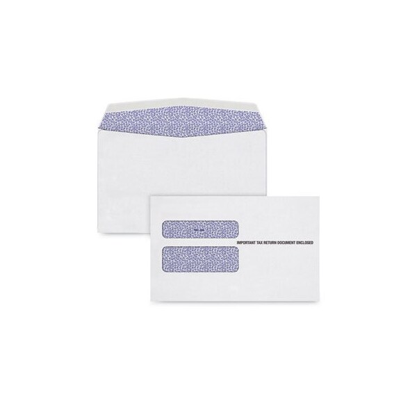 W-2 Laser Double Window Envelope, Commercial Flap, Gummed Closure, 5.63 x 9, White, 100PK