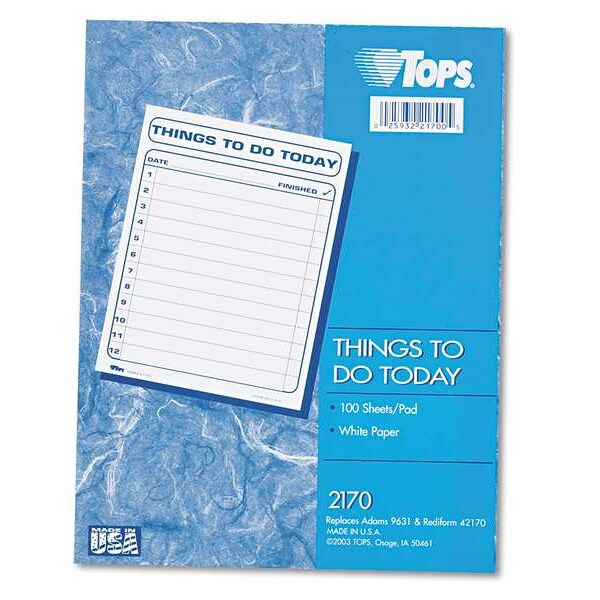 Daily Agenda Pad, Length 11 in, Width 8 1/2 in, Includes 12 Entries Per Form, Check-off Boxes to Indicate Task has been Finished, Number of Sheets 100, Paper Color Blue, White