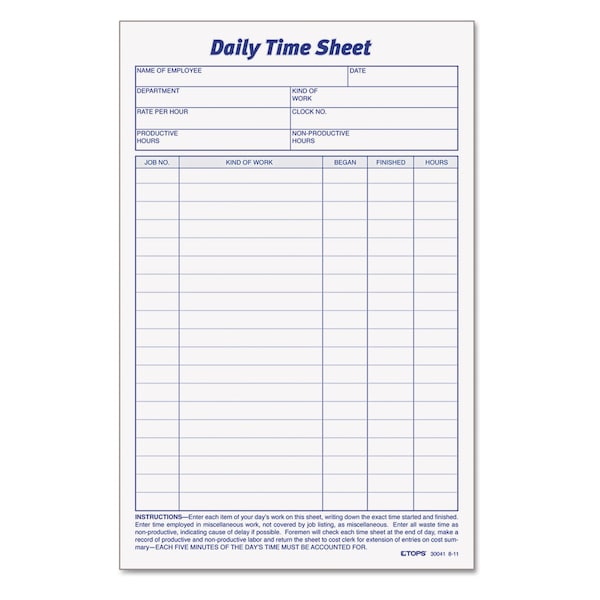 Daily Time and Job Sheets,8.5x5.5,PK200, Package Quantity 200