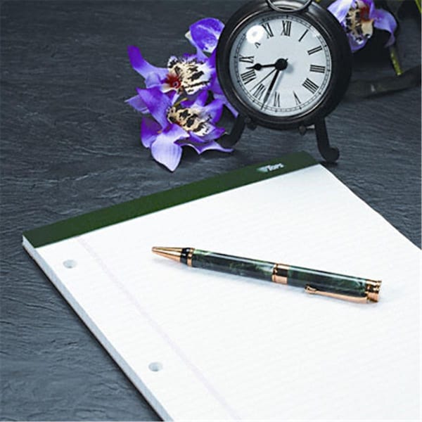 This ruled writing pad has an extra stiff back for writing support. Letr-Trim perforation for clean tear-out. Sheet Size: 8 1/2 in x 11 3/4 in. Ruling: Legal. Number of Sheets per Pad Nom: 100. Paper Colors: White. Sheet Perforation: Letr-Trim. Binding Edge: Top. Punched/Unpunched: 3-Hole Side Punched. Binding: Stapled. Lines Per Page Nom: 28. Backing: 80 pt. Backing: Backboard. Height Nom: 11 3/4 in. Width Nom: 8 1/2 in. Pre-Consumer Recycled Content Percent Nom: 0 %. Post-Consumer Recycled Content Percent Nom: 0 %. Total Recycled Content Percent Nom: 0 %.