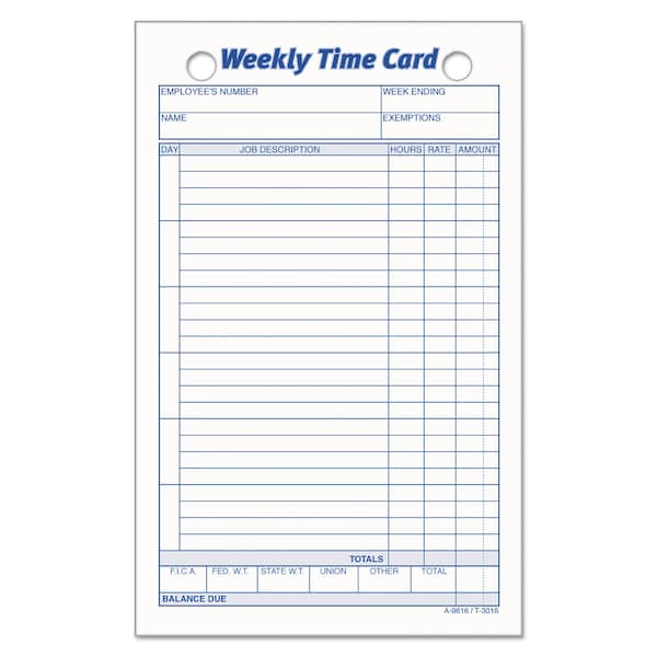 Employee Time Card,4 1/4x6 3/4,PK100