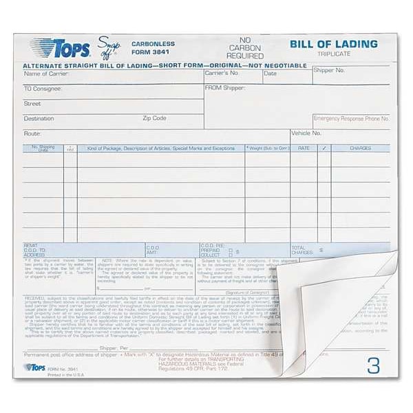 Hazardous Material Short Forms, Length 7 in, Number of Duplicates 3-Part Carbonless, Carbon Copies Yes, Width 8 1/2 in, Includes 6 Entries Per Form and Bottom 2-Hole Punched, Number of Sheets 50, Paper Color Blue, White, Package Quantity 50
