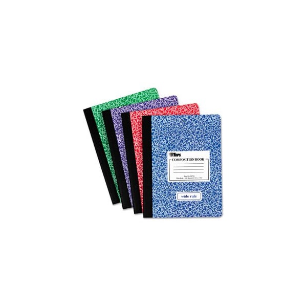 COMPOSITION BOOK W/HARD COVER, WIDE RULE, 9-3/4 X 7-1/2, WHITE, 100 SHEETS/PAD