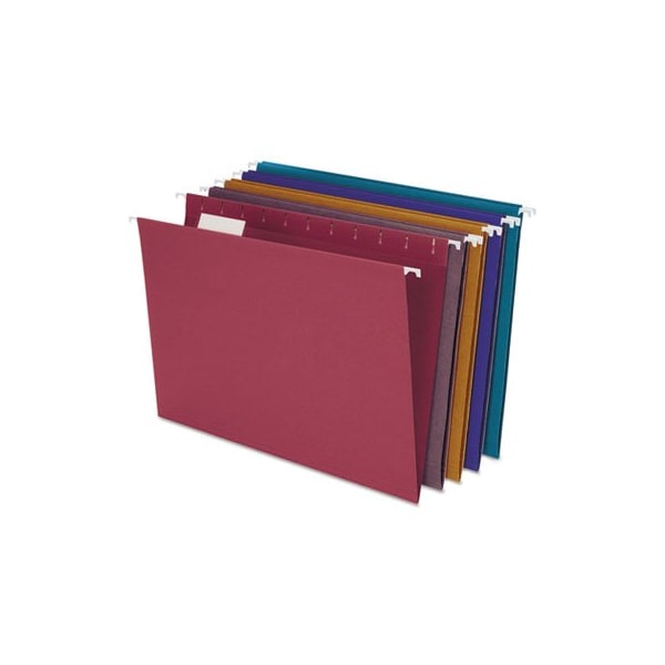 Use color to categorize files and speed up filing time. Lighter color interior helps prevent misfiling. Scored at bottom for 3/4in expansion. Includes tabs and blank white inserts. Smooth inEZ Slide Coated Hangers. Folder Size Type: Letter; Max Folder Expansion: 0.5in; Folder Color: Assorted; Color Family: Multicolor.