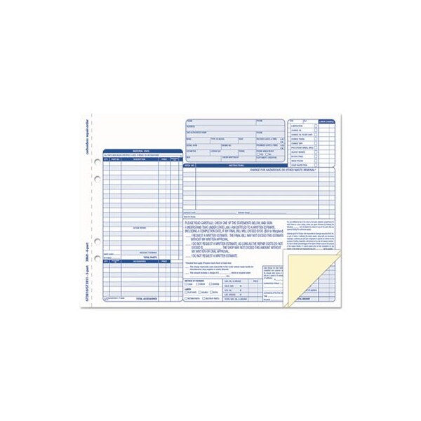 TOPS, Auto Repair Four-Part Order Form, 8 1/2 X 11, Four-Part Carbonless, 50 Forms (Discontinued)