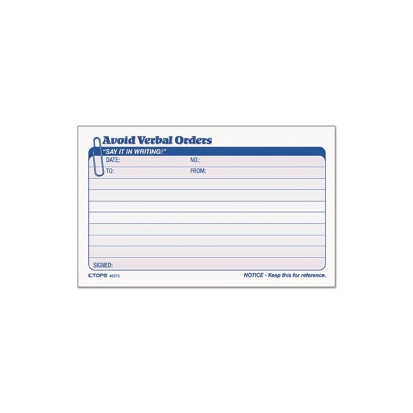 TOPS, Avoid Verbal Orders Manifold Book, 6 1/4 X 4 1/4, 2-Part Carbonless, 50PK