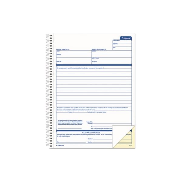 TOPS, Spiralbound Proposal Form Book, 8 1/2 X 11, Two-Part Carbonless, 50PK
