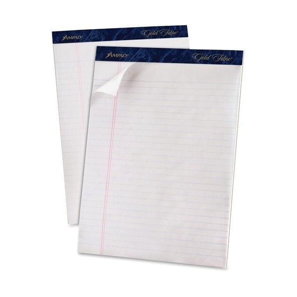 Perforated pad is ideal for office and home use. Watermarked paper will not bleed through. Binding at top is stapled and glued. Extra-thick, chipboard back offers stiff support when writing. Sheets are microperforated for clean separation. Pad contains 50 legal/wide-ruled sheets. Each sheet has 11/32'' line spacings and a 1-1/4'' left margin.