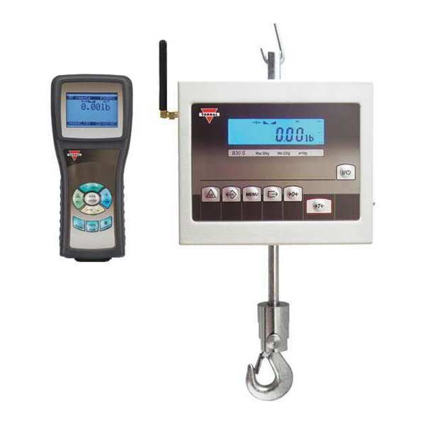 Crane Scale, Capacity 60 lb, 30 kg, Wireless Remote Control, Scale Accuracy +/-1 Graduation, LCD Scale Display, Housing Material Steel, Scale Graduations 10g/0.02 lb, Weighing Units ct, dwt, g, lb, metric ton, N, oz, Overall Height 3 29/32 in, Temp. Range -10 Degrees to 40 Degrees C, Power Source (6) AAA Batteries, Finish Powder Coated, Includes AC Adapter, Remote Control, Basic Hook Material Steel, Digital/Mechanical Digital, Overall Length 7 45/64 in, Overall Width 6 1/2 in