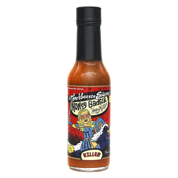 The label on this hot sauce reads 'Killer' and that's no lie. The heat from Honey Badger comes as a bit of surprise. As your brain is busy dealing with all the rich flavors, it kind of sneaks up behind you and yells boo! With great texture, a lovely aroma and beautiful color, you might find it hard to put this bottle down.