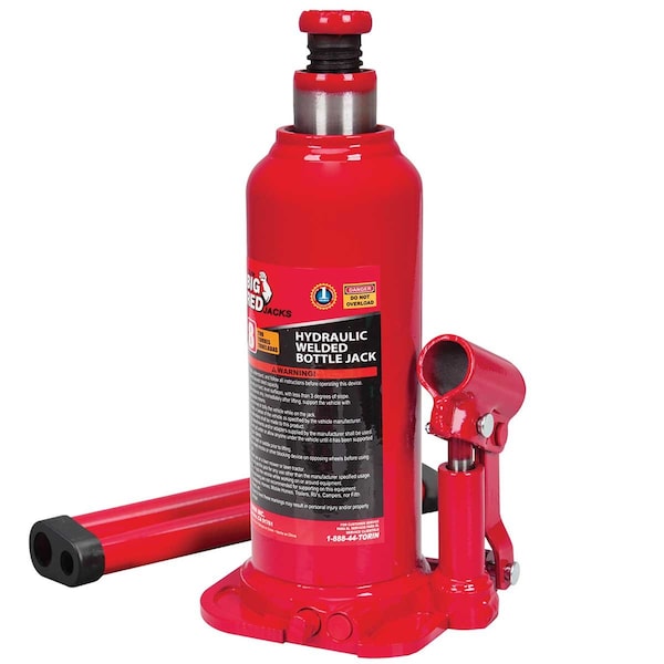 Durable, yet economical steel hydraulic bottle jack pumps from the side, making it for vertical use only. Includes pump handle.