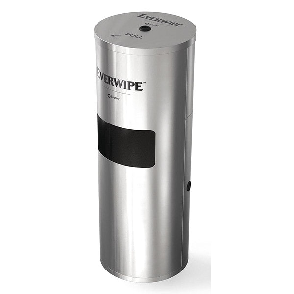 Wet Wipe Dispenser and Waste Bin, For Wipe Dispensing Form Center Pull Roll, Dispenser Operation Manual, Dispenser Capacity (2000) Wipes, Dispenser Mounting Floor, Dispenser Material Metal, Color Silver, Dispenser Height 37 1/4 in, Dispenser Width 15 1/4 in, Dispenser Depth 14 1/4 in, Proprietary/Universal Universal, Dispenser Configuration Vertical Single Roll, Product Series Everwipe Dispensing Systems, For Use With Grainger Item Number 56KE16, 60FE72