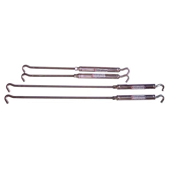 AnchorGuard turnbuckles are made of 100 Percent Stainless Steel. The front turnbuckles are spring-loaded and the rear are cushioned. These are easy to set-up with the spring tension indicators and each turnbuckle is labeled so it easy to figure out which one goes where. Simply put AnchorGuards are better than the rest. Features Compatibility - Bed Mounted Tie Down. End Type1 - Spring Loaded Hook. End Type2 - Hook. Reach Length - 2 Front With 15-1 2 To 21-3 4 in. And 2 Rear With 29-1 2 To 33 in. Capacity - 800 lbs. Color - Silver. Material - Stainless Steel. Lockable - Yes.