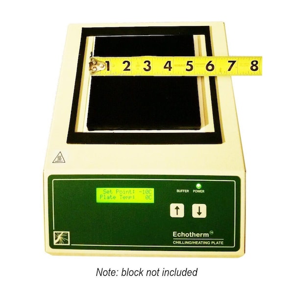 The solid-state EchoTherm Large, Heavy-Duty, Digital, Electronic Chilling/Heating Dry Bath is versatile, reliable and easy to use. Dry bath incubator can freeze, chill, or heat a variety of tube sizes including 0.2, 0.5, 2.0, 15 and 50 ml.It has easy to use digital controls and a two line alphanumeric digital display that is back lit for easy reading, displaying target and actual temperatures. It will collect 8110 data points. This dry bath has a RS232C interface. It has an audible alarm and auto shut off.The chilling/heating surface is a 5 inch (12.7 cm) square aluminum plate that is very flat for optimal contact with your sample. When unloaded, the plate surface will reach below 0°C in under two minutes. It will also heat to 37°C in approximately 3 minutes. This rate of chilling or heating may vary with the load on the plate.Compact and portable design requires minimal bench space.