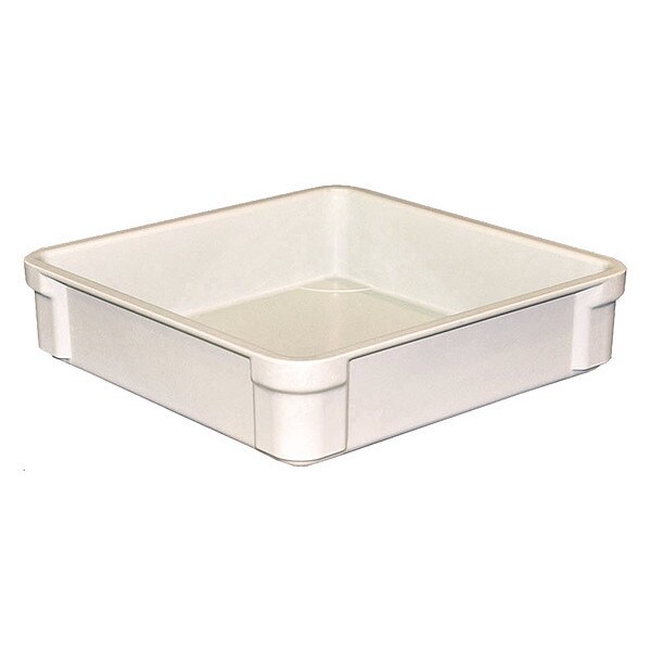 Stacking Tote, Container Wall Type Solid, Fork Pockets Fork Pockets Not Included, Includes Lid Lid Not Included, Material Composite, Maximum Operating Temperature 250 Degrees F, Minimum Operating Temperature -60 Degrees F, Body Color White, Nestable Not Nesting Capable, Overall Height 3 1/2 in, Overall Length 14 3/4 in, Overall Width 14 3/8 in, Resistant To Alkaline Solution, Cutting Oil, Detergent, Mild Acid, Stackable Stacking Capable, Stacking Capacity 750 lb, Volume Capacity 2.4 gal