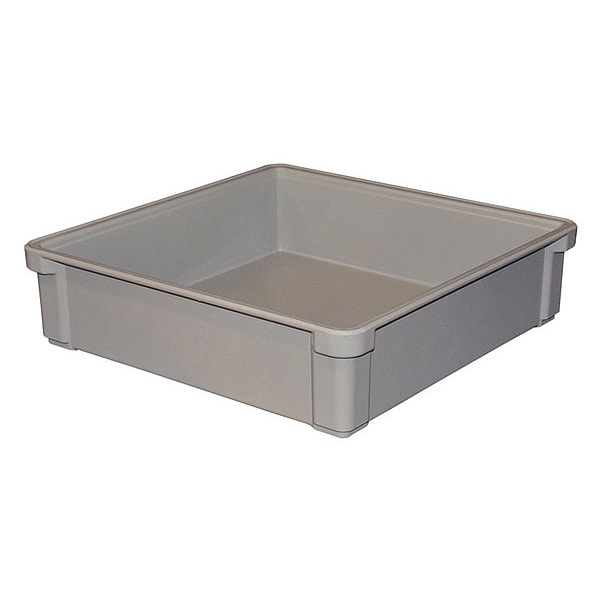 Stacking Tote, Container Wall Type Solid, Fork Pockets Fork Pockets Not Included, Includes Lid Lid Not Included, Material Composite, Maximum Operating Temperature 250 Degrees F, Minimum Operating Temperature -60 Degrees F, Body Color Gray, Nestable Not Nesting Capable, Overall Height 4 1/2 in, Overall Length 17 1/2 in, Overall Width 17 1/2 in, Resistant To Alkaline Solution, Cutting Oil, Detergent, Mild Acid, Stackable Stacking Capable, Stacking Capacity 750 lb, Volume Capacity 4.7 gal