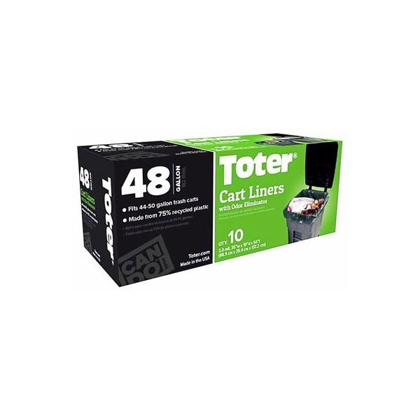 Toter, 10 Count, 48 Gallon, Cart Liner, Protects Inside Of Cart From Sticky Messes, Built In Odor Shield, Easily Slips Out Falls Right Into Garbage Truck, Made Of Durable 75 Recycled Material, Designed For Toter Carts But Can Be Used On Many Brands