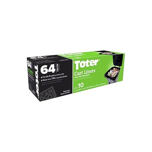 Toter, 10 Count, 64 Gallon, Cart Liner, Protects Inside Of Cart From Sticky Messes, Built In Odor Shield, Easily Slips Out Falls Right Into Garbage Truck, Made Of Durable 75 Recycled Material, Designed For Toter Carts But Can Be Used On Many Brands