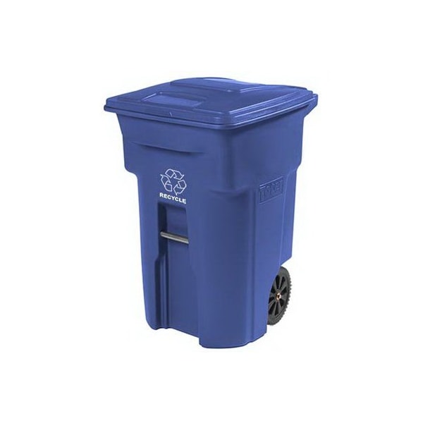 64 Gallons, 2 Wheels, Blue Recycle Cart, With Attached Lid, Manufactured Using Medium Density Polyethylene Up To 50 Recycled Content, Fully Recyclable, Wheels Make It Easier To Tilt Roll