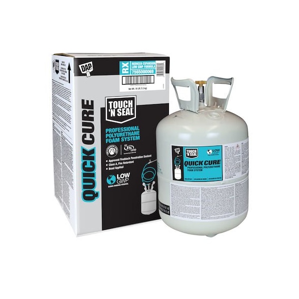 Foam Sealant, Insulation Value R-4.9, Color Cream, Container Size 16 lb, Container Type Cylinder, Full Cure Time 1 day, Includes Applicator; Hose, Working Time 15 min, For Use On Surface Material Concrete, Drywall, Insulating Foam Boards, Metal, Plastic, Wood, Standards ICC-ES ESR 1926, Application Method Straw, Environment Outdoor, Maximum Application Temperature 100 Degrees F, Minimum Application Temperature 40 Degrees F, Number of Components 1, Product Type Spray Foam Sealant