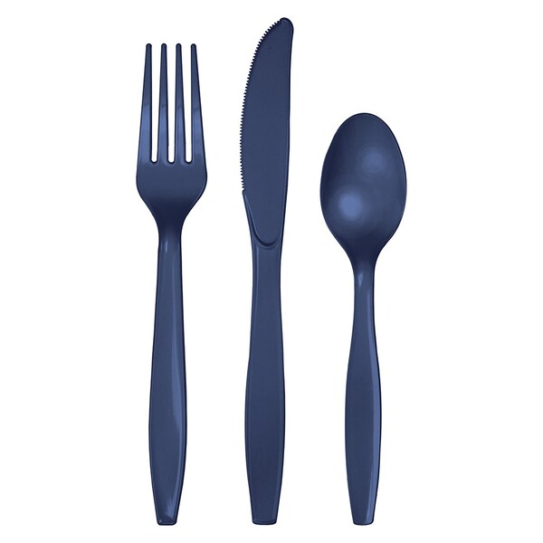 Give your guests a premium dining experience that matches your party color atmosphere with the Navy Blue Cutlery Assortment. This elegant cutlery set comes with forks, spoons, and knives. Sold in quantities of 288, these heavyweight plastic utensils will bring a unique touch to your table setting.