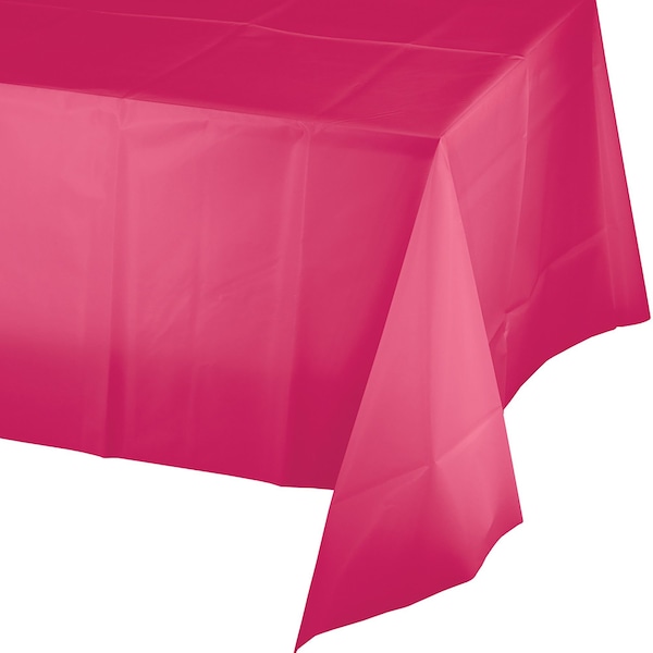 Hot Magenta Pink Plastic Tablecloth, 108"x54", 12PK