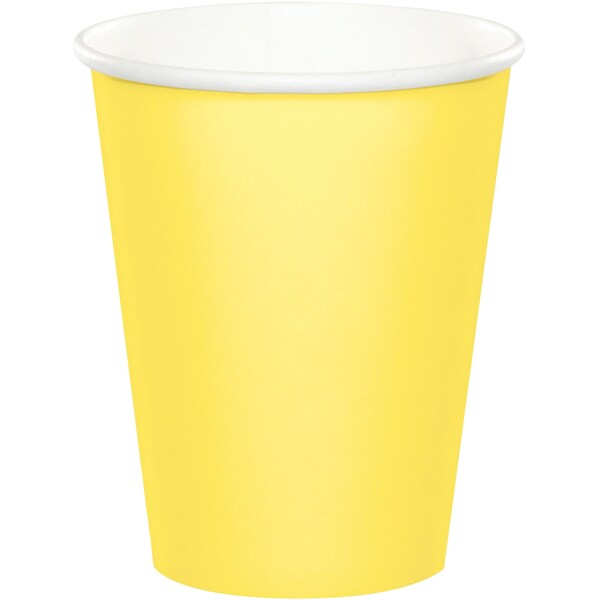 Able to handle both hot and cold beverages, our Mimosa Yellow Cups are a budget-friendly way to add a little style to the table display. The paper cups hold 9 oz. and are perfect for festive party punches as well as coffee and tea service at big get-togethers or family meals. These sturdy cups are sold in quantities of 240 and coordinate perfectly with other tableware selections from the complete line of Mimosa Yellow party supplies.
