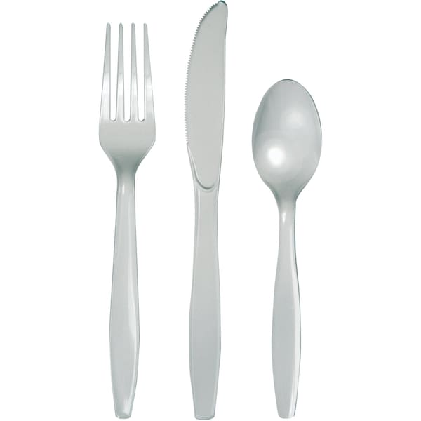Silver Assorted Plastic Cutlery, Shimmering, 288PK