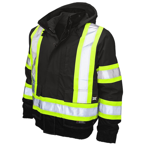 Hi-Vis 3-in-1 Safety Bomber Jacket, 300D Poly Oxford with PU Coating, Class 1 Type O, Black, 2XL