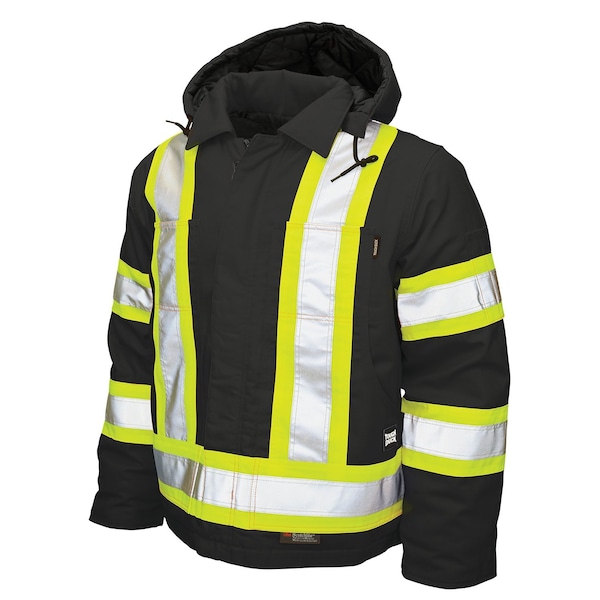 Hi-Vis Safety Jacket, 100% Cotton 10 oz Duck, Class 1 Type O, Black, 3XL