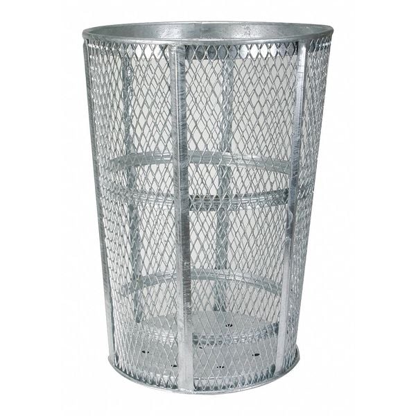 Round, Open, 48 gal, Steel, Height 33 in, Galvanized Steel, Galvanized Steel, No Lid, Free-Standing