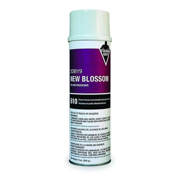 Air Freshener, Air Fresheners, Fragrance New Blossom, Container Type Aerosol Spray Can, Container Size 10 oz, Recommended Dilution Ready to Use, Air Freshener Form Liquid, Clear, Air, None, Ready to Use/Concentrated Ready to Use, Net Weight 10 oz, NSF Rating Not Rated, Product Series Tough Guy, VOC Content 30 Percent