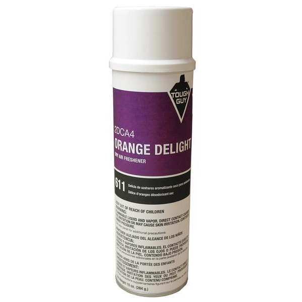 Air Freshener, Air Fresheners, Fragrance Orange Delight, Container Type Aerosol Spray Can, Container Size 10 oz, Recommended Dilution Ready to Use, Air Freshener Form Liquid, Clear, Air, None, Ready to Use/Concentrated Ready to Use, Net Weight 10 oz, NSF Rating Not Rated, Product Series Tough Guy, VOC Content 30 Percent