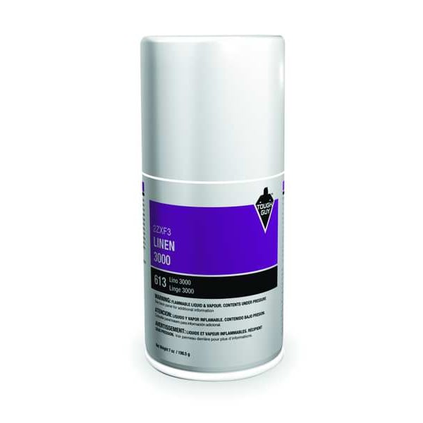 Air Freshener Refill, Liquid, Fragrance Linen, Aerosol Spray, 7 oz, Product Series Tough Guy 3000, Refill Life 30 day, NSF Rating Not Rated, Coverage 950 cu ft, Black; Purple; White, Compatible Grainger Part Number 2ZXA9, Compatible Mfg. Model Number 2ZXA9, Biodegradable No, VOC Content 26 Percent, Flash Point 132 Degrees F, Length 2 1/2 in, Width 2 1/2 in, Height 5 3/4 in, Net Weight 198.45 g