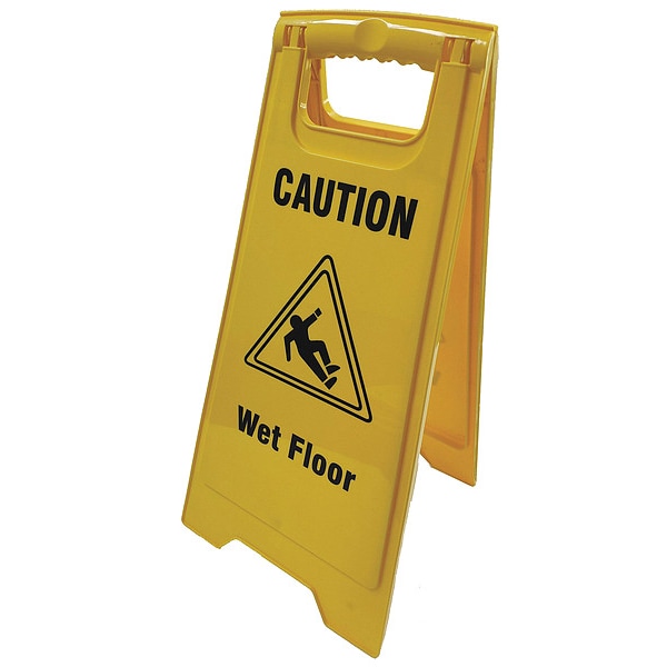 Caution Sign, Sign Subject Matter Caution, Height 23 39/64 in, Width 11 51/64 in, Sign Material Plastic, Sign Mounting Style Free-Standing Floor, Header Caution, Legend Caution Wet Floor, Printed Language English, Sign Shape Triangle
