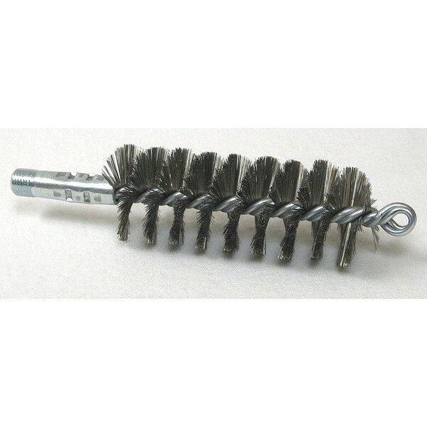 Flue Brush, Single Spiral/Double Stem, Fill Type Stainless Steel, Brush Length (In.) 4 1/2 in, Brush Dia. (In.) 1 3/4 in, Handle Type 1/4 in (M) NPS, Handle Color Not Applicable, Overall Length (In.) 7 1/2 in, For Use With Fiberglass or Metal Handles, Includes -