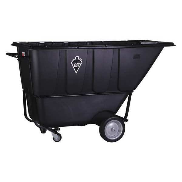 Tilt Truck, Cubic Foot Capacity 27 cu ft, Load Capacity 1,200 lb, Overall Length 76 in, Overall Width 39 3/8 in, Overall LxWxH 77 x 34 1/2 x 43 1/4, Overall Height 43 1/4 in, Optional Lid Mfg. No. 21VK31, Container Material Plastic, Color Black, Handle Type Flat, Mobility Option Forklift Capable, Manual, Caster/Wheel Configuration (2) Axle-Mounted, (2) Swivel, Caster/Wheel Mounting Location Standard, Caster Wheel Type Standard, Caster Wheel/Tread Material Thermoplastic Polyurethane