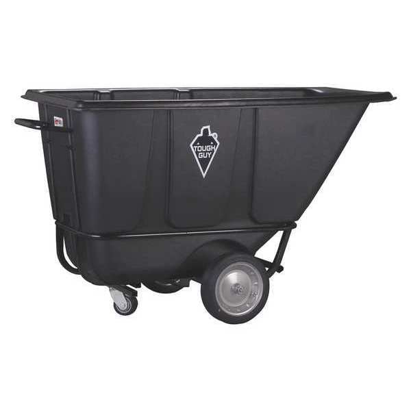 Forkliftable Plastic Tilt Truck, Cubic Foot Capacity 13.5 cu ft, Load Capacity 1,400 lb, Overall Length 65 in, Overall Width 29 1/2 in, Overall LxWxH 65 x 29 1/2 x 37 1/4, Overall Height 37 1/4 in, Optional Lid Mfg. No. 21VK32, Container Material Plastic, Color Black, Handle Type Flat, Mobility Option Forklift Capable, Manual, Caster/Wheel Configuration (2) Axle-Mounted, (1) Swivel, Caster/Wheel Mounting Location Standard, Caster Wheel Type Standard, Caster Wheel/Tread Material TPU