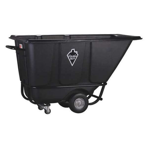Plastic Tilt Truck, Cubic Foot Capacity 13.5 cu ft, Load Capacity 850 lb, Overall Length 65 in, Overall Width 29 1/2 in, Overall LxWxH 65 x 29 1/2 x 36, Overall Height 43 in, Optional Lid Mfg. No. 21VK32, Container Material Plastic, Color Black, Handle Type Flat, Mobility Option Manual, Caster/Wheel Configuration (2) Axle-Mounted, (2) Swivel, Caster/Wheel Mounting Location Standard, Caster Wheel Type Standard, Caster Wheel/Tread Material TPU, Caster Wheel Dia. 4 in
