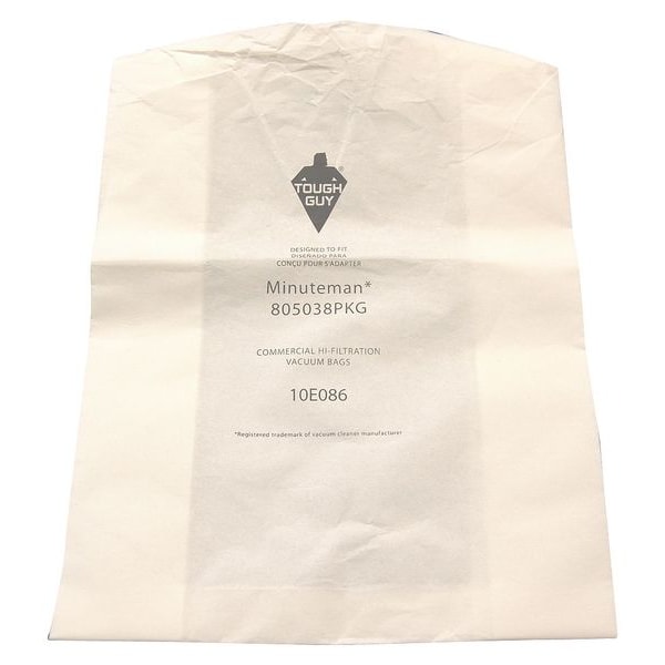 Vacuum Bag, For Vacuum Type Industrial Vacuum, Fits Vacuum Brand Minuteman, Fits Vacuum Models C80115-01, C80215-01, C80355-04, C80355-05, C81015-01, C81415-01, C81455-01, C81455-03, C81455-05, C82015-01, C82915-06, C82917-00, C83015-01, C83905-01, C83905-03, C83905-05, C83905-16, C83905-55, C87155-01, C87255-01, C87515-05, C87515-06, C87555-01, C82915-05, Bag Filtration Type Standard, Filter Efficiency Up to 99 Percent at 0.3 microns, Bag Material Paper, Ply Count 1-Ply, Bag Pickup Type Dry