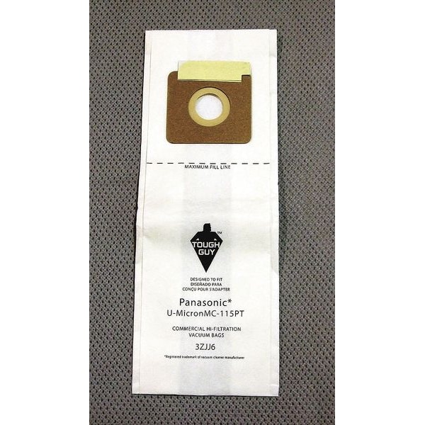 Vacuum Bag, For Vacuum Type Upright Vacuum, Fits Vacuum Brand Mastercraft, Panasonic, Fits Vacuum Models QC 1415, Bag Filtration Type Standard, Filter Efficiency Up to 99 Percent at 0.3 microns, Bag Material Paper, Ply Count 2-Ply, Bag Pickup Type Dry, Bag Reusability Reusable, Height 1/2 in, Length 15 3/4 in, Width/Diameter 5 3/4 in, Package Quantity 3