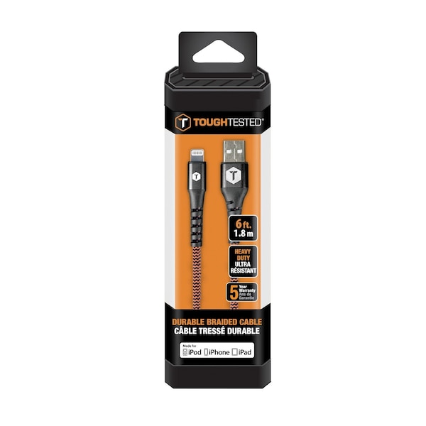 Looking for Lightning cable? Check out this ToughTested TT-FC6-IP2 Durable Braided USB Type-A to Lightning Cable! This cable is designed for use with Apple devices and can both charge and sync.