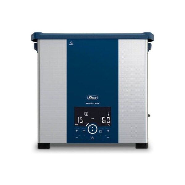 Elmasonic select heated digital ultrasonic cleaner, powerful and programmable the powerful elmasonic select ultrasonic cleaner has parameters that can be set to optimize parts cleaning, sample preparation, and solvent degassing. The select models feature a large digital display and store up to 4 programs for quick recall and reproducible results. features: 5 ultrasonic modes for powerful, rapid, thorough, reproducible cleaning and mixing all models have timer up to 6 hours and heater up to 80c stores up to 4 programs for fast and easy call-up brilliant digital display clearly shows all operating parameters audio/visual signal at cycle completion the elmasonic select ultrasonic bath operates at 37 khz in five ultrasonic modes: sweep, pulse, dynamic, eco, and degas. Sweep mode produces a continuous slight variation of frequency to provide uniform and thorough cleaning of parts. Samples are rapidly mixed, dispersed, dissolved, or homogenized in pulse mode. Dynamic mode combines sweep and pulse to optimize cleaning of parts with stubborn contaminants. Eco is a low intensity sweep mode for nearly silent, gentle cleaning. Trapped air and gas are quickly removed from solvents or fresh cleaning solution in degas mode. the bright digital display shows set and remaining time, set and actual temperature, ultrasonic mode, and program in use. When the run ends the unit emits a signal and displays a check mark. The microprocessor-controlled generator in this sonic cleaner maintains constant ultrasonic power, sensing and adjusting for light or heavy loads in the tank. Digital operation with power tracking ensures reproducible performance from run to run. all models from 6 liters and up have drains with a valve on the side of the tank for easy access. Temperature is adjustable from 25c to 80c the display can be switched to f; the timer can be set from 1 minute to 6 hours. The tank cover can be flipped