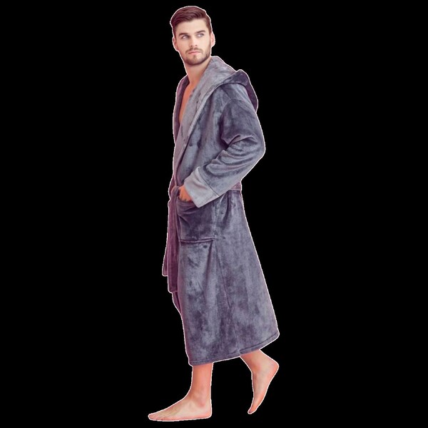 Men's Unisex Comfortable Fleece Bathrobe - Plush Soft Robe. 100% Polyester Plush. This women's cozy bath robe is made from superior quality, extra-durable polyester lightweight fleece bathrobe fabric. Made of 100% polyester Machine washable and tumble dry Gentle on the skin Fleece robe for a warming effect Full-length design. hood Styled with traditional patch pockets, double lops, and belt Premium quality Perfect gift for men