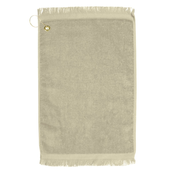 Premium Fringed Velour Golf Towel with Corner Hook &Grommet Placement-Beige