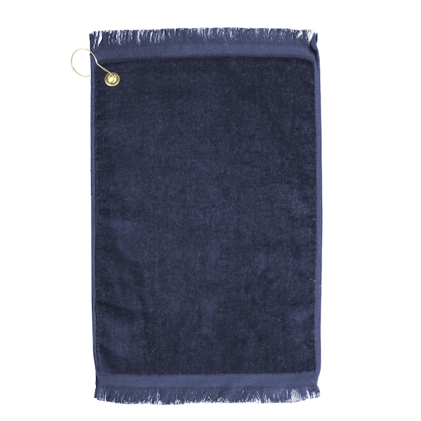 Premium Fringed Velour Golf Towel with Corner Hook &Grommet Placement-Navy