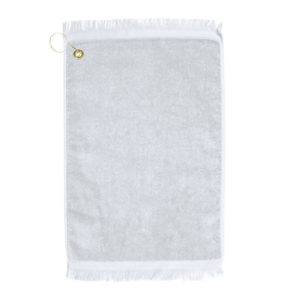 Premium Fringed Velour Golf Towel with Corner Hook &Grommet Placement-White